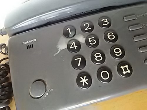 除光液のようなものをこぼして、塗料がはげた部分もあって、現在はさすがに使っていないのですが、愛着があってずっと捨てきれずに持っている電話機です。